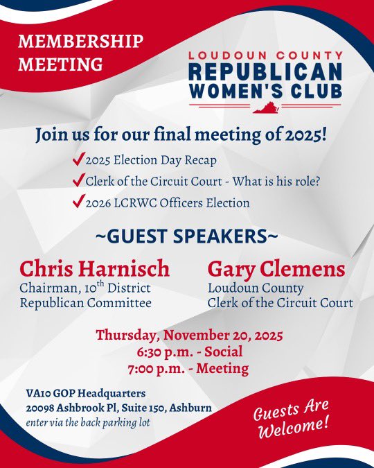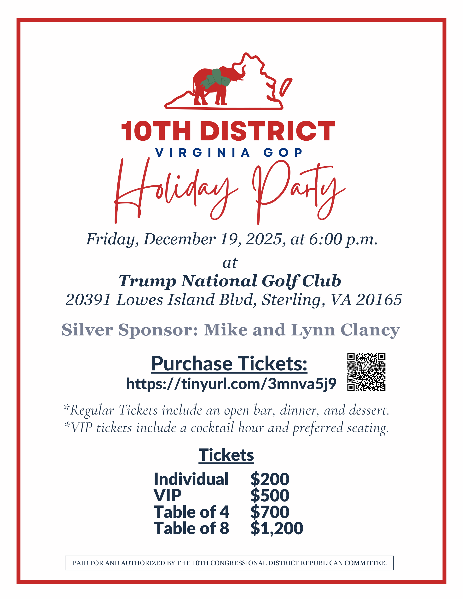 “The region that comprises Virginia’s 10th Congressional District, with its rich history and mosaic of vibrant communities, reflects the very best of our Commonwealth and the incredible promise of our Nation. The 10th Congressional District Republican Committee strives to keep our region safe, prosperous, and free by electing Republicans throughout the district, prioritizing sending a Republican to represent VA-10 in Congress.”